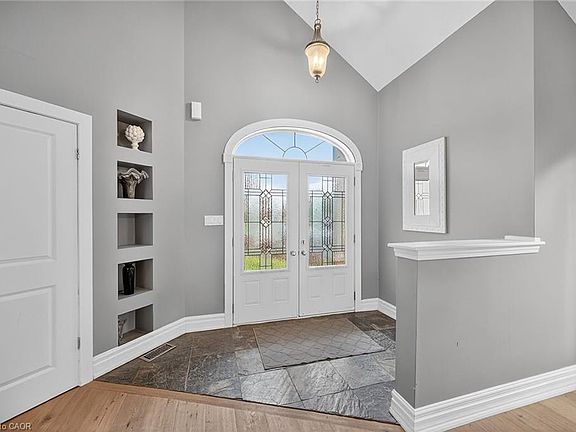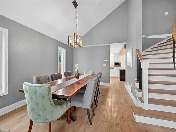 Situated on a spectacular pie-shaped lot in a sought-after Ancaster neighbourhood, this stunning home is nestled in a quiet court-like setting. nicely maintained, the 4-bedroom, 2.5-bathroom residence boasts an impressive array of renovations completed since 2015. Upon entering, you'll be struck by the vaulted ceilings, formal dining room, and beautiful semi-circular wood staircase. The gourmet kitchen opens onto a private backyard oasis, complete with a saltwater pool featuring a tranquil waterfall, new pump, liner, heater, and winter safety cover, as well as a brand-new hot tub, large patio, deck, trellis, and privacy fencing, all set on maintenance-free artificial grass. The upper floor features 4 generous bedrooms, including a master suite with a glamorous ensuite bath and spacious walk-in closet. The 3 other bedrooms share a beautiful bathroom with glass shower. The finished basement provides ample space for a variety of uses, including a Games room, potential theatre room or teen retreat, a large recreation room & roughed-in 3-piece bath awaiting your imagination. The oversized 2.5-car garage offers ample parking and storage. This property's location is ideal, being close to major highways, shopping centres, schools, parks, and public transportation