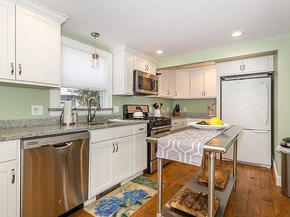 Pristine 2/3 Bedroom Cape in highly desired Ponkapoag neighborhood featuring a large fireplaced living room with recessed lights & hardwood floors, a remodeled bright kitchen with granite countertops and stainless steel appliances, formal dining room with crown molding, master bedroom with adjoining 3rd bedroom / nursery, 2.5 updated baths, finished lower level family room with 2nd fireplace, full bath and 2 large storage areas with more potential to finish, Other amenities and updates include hardwood floors, plantation shutters, new windows, new roof, updated electrical, freshly painted exterior, new driveway, new exterior composite deck, new storage shed, new stone retaining walls & a nicely landscaped yard. Commuters dream location with easy access to Rt 93 / 95 / 128.