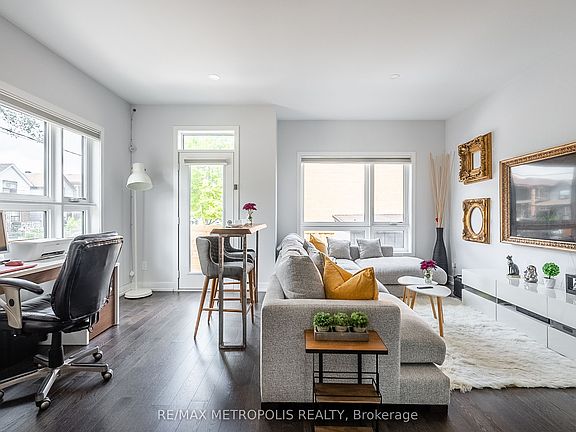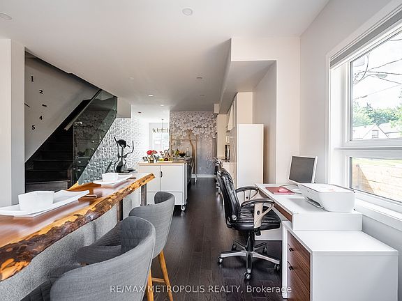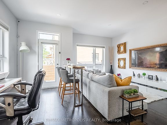 Welcome to this 3-storey corner Toronto home that's fully furnished with an up-to-date decor & an assortment of luxury features. All utilities (heat, hydro, water) are included. The open-concept living space is a perfect place to relax after a long day or host a family gathering. The 65-inch Samsung The Frame TV provides over 10,000+ channels & movies On Demand through the included Android Box & IPTV service which is perfect for those that enjoy movies & shows. Bell Fibe high speed internet is included; therefore, you can stream movies, watch videos & work from home with ease. The private driveway consists of 2 parking spaces & is also included in the rent. 1 EV charger spot is also available for use if you have an electric car. Kitchen is equipped with stainless steel appliances, small appliances, cookware, & cutlery. The large centre island is ideal size for the breakfast area & cooking your favourite dishes. The dining area has a large table - perfect for family & friends gatherings. The powder room is conveniently situated next to the foyer area & the dining room. The upper levels of the home consists of 3 spacious bedrooms, lots of closet space & additional full washrooms. All bedrooms are tastefully furnished with consistent style. The primary bedroom, located on the 2nd level, offers a his/hers closet, a 4 piece ensuite & a walkout to a large patio with outside furniture. Coffee lovers will absolutely enjoy the second-floor patio where they can savor their morning fill, while the main-level outdoor space provides a great platform for entertaining, just sitting down & BBQing with friends! Additionally the home features hardwood floorling throughout, the ensuite washer & dryer for added convenience, & office space in the 2nd bedroom. Easy access to TTC bus routes & future Eglinton Crosstown LRT, connecting you to the rest of the city with ease. Close to parks, schools, shopping, dining, & community center. Short-term option is available.