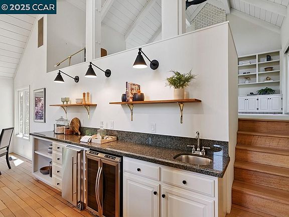 Tucked away on a quiet cul-de-sac in Lafayette’s coveted Happy Valley, this home offers the privacy of a 1.5-acre retreat with the convenience of being just a mile from town. Flexible living space is designed for today’s lifestyle, entertaining & working from home — with easy access to downtown and BART. The dramatic great room features vaulted, beamed ceilings & walls of glass framing serene views of the hills & Briones Park. A chef’s kitchen and bar area flow to indoor/outdoor dining, perfect for gatherings large and small. The multi-level design provides privacy and flexibility, including a luxurious primary suite with sitting area/office, spa-like bath, and walk-in closet. Additional bedrooms and living spaces allow everyone their own retreat. Outdoors, formal gardens, fruit trees, lavender, and wildflowers surround playful spaces: a giant rope swing, hot tub, waterfall, lawn, and neighborhood tennis/pickleball courts. Year-round beauty includes dazzling spring daffodils and the seclusion of a backyard sanctuary. Additional highlights: 3-car garage with wine cellar, solar with two Tesla Powerwalls, dual EV outlets. Walk to top-rated Happy Valley Elementary, Rose Lane trick-or-treating, and downtown Lafayette. A rare blend of elvated living, convenience, privacy, and retreat.