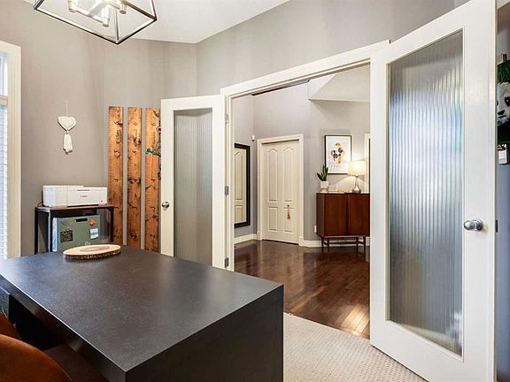 Front office spaceDouble-sided fireplaceOpen-concept main floorStunning kitchenLarge islandGranite countertopsWalk-through pantry