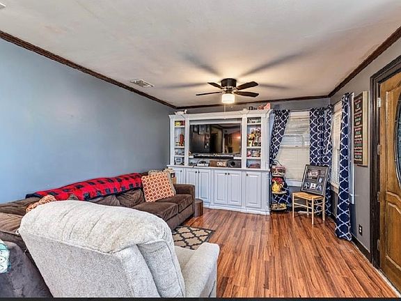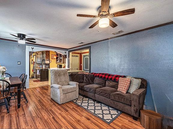 Charming and well-maintained home with numerous custom upgrades and accessibility features throughout! The living area offers an open feel with a partially removed wall that creates a convenient bar and keepsake display. Enjoy new flooring, a custom real-wood front door with decorative glass, and a built-in wood window bench with storage. The kitchen was updated with real-wood, custom-built cabinetry, solid-surface countertops, tile backsplash, pull-out lower drawers, and a specially ordered outward-opening window for extra ventilation and light. The full bath features a mobility-friendly walk-in shower with safety grab bars, expanded medicine cabinet, and real-wood cabinetry. The half bath includes custom tile work, countertop sink, and additional wood storage. The back room offers a large custom closet, shoe rack, and new flooring, perfect for storage or hobbies. A widened hallway entry allows easier wheelchair or scooter access. This home blends comfort, accessibility