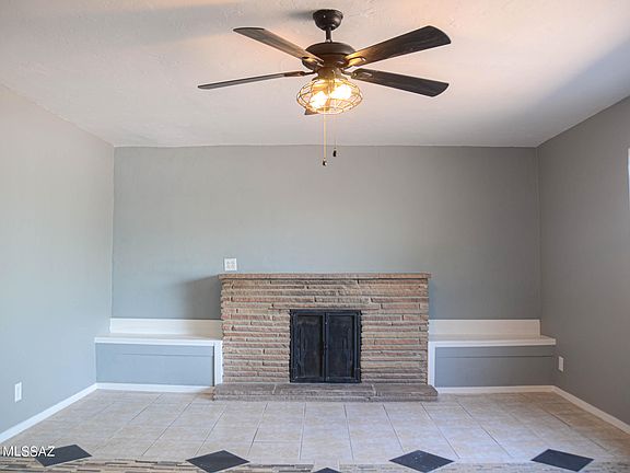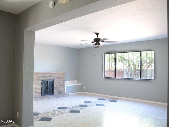 Charming Santa Fe-style home in a prime location near Pima Community College and the University of Arizona. This well-maintained home features a large family room, a cozy fireplace, and an updated kitchen with modern finishes. The home is newly painted inside and has no carpet--just beautiful tile flooring throughout. Enjoy the unique architectural charm, natural light, and easy access to local amenities.
