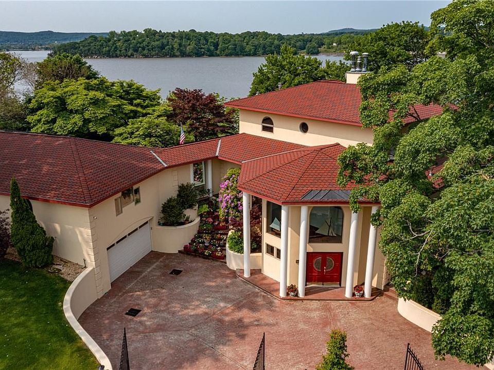 This one-of-a-kind Mediterranean home sits directly on the Hudson River with a private boat dock and unobstructed panoramic views. Sited on 1.63 acres with mature landscaped gardens, bluestone paths and stone walls. This 5,330 square-foot home has been meticulously renovated and expanded to capture breath-taking Hudson river views from all rooms, multiple terraces and patios. Private gates open to a circular drive that extends to a 6-car drive-through garage. The entrance foyer boasts a 20-foot ceiling leading to a chef’s dine-in kitchen overlooking the koi pond. The dining room features cathedral ceilings with oversized windows. Two staircases lead to the second level offering a living room and two bedrooms, one with access to a terrace. The primary suite is on its own level and features a private deck, spa-like bath, walk-in closet, sitting area, and a nursery/office. A glass enclosed breezeway from the living room segues to a secondary wing, offering an additional bedroom suite with terrace, sitting room, gym, sauna, and a large home office. Outdoor entertaining includes a seated fire-pit, dining table, hammock, kitchen, and four outdoor speakers. A true entertainer's paradise both inside and out. Call it your weekend paradise or stay on vacation year-round. One hour to NYC from Cortlandt station. Additional Information: ParkingFeatures:4+ Car Attached,