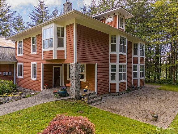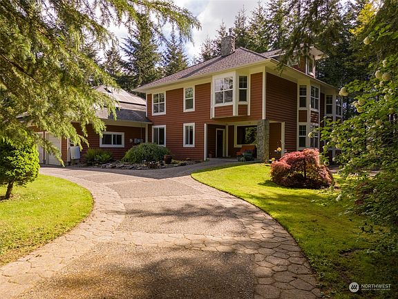 A stunning property with so much to offer! On almost 2 acres, this custom-built, 2+ story house, features 4 bedrooms, 3 baths, and a guesthouse on the property. With up to 6 garage spaces, there is room galore for working on cars or creating a shop space. The first floor is ADA accessible with low barrier entrance, wide doors, and bathroom options. The second floor has an additional great room with an attached kitchenette, and a spiral staircase to a "crow's nest"-type space (or an extra sleeping space). Welcome to your own private retreat amongst the trees, where you can enjoy the birds and wildlife, minimal traffic due to being on a dead-end street, and all the amenities! Perfect for multi-generational living!