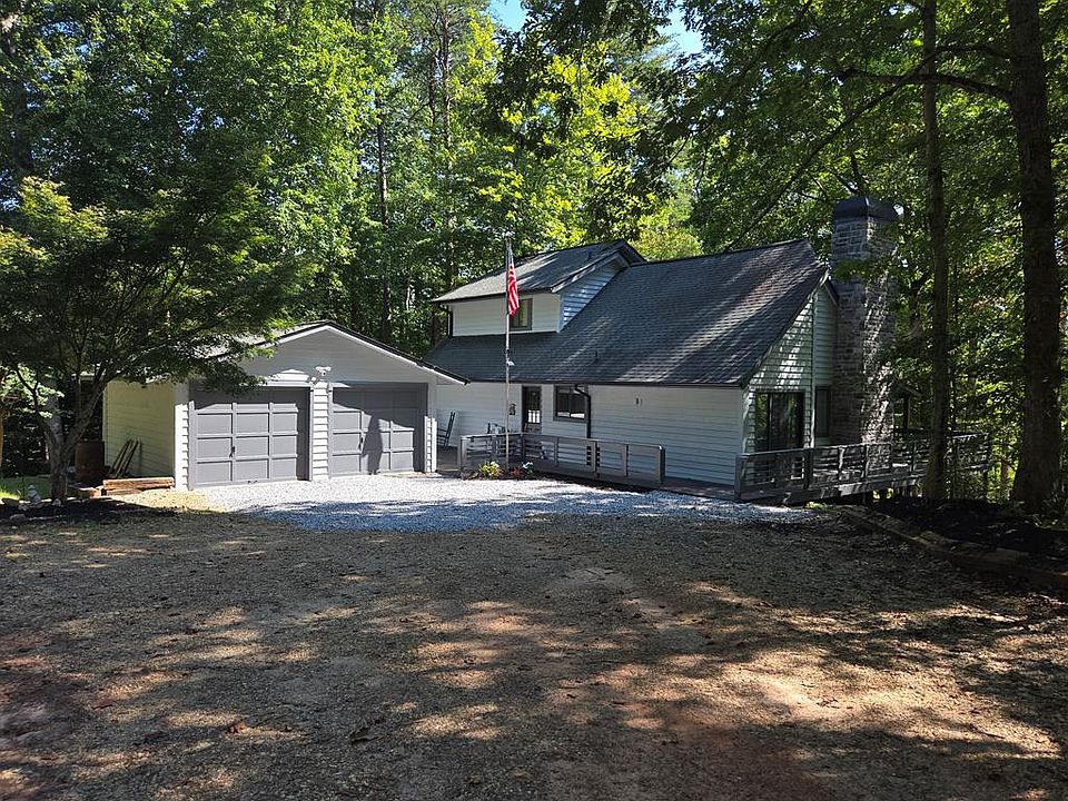 NEW PAINT house & decks! Seller will buy down interest rate so you don't have to wait on Feds- INFO IN DOCUMENTS!!! UNRESTRICTED 3BR/2BA! BLAIRSVILLE IN-TOWN 3BR/2BA COTTAGE + ELEVATOR + DETACHED 2 CAR GARAGE WITH WORKSHOP + PRIVATE & QUIET IN-TOWN LARGE WOODED LOT. Living room with soaring cathedral ceilings, transom windows, rock wall fireplace, new flooring on main level, dining room with glass sliding doors, new granite countertops and backsplash in the kitchen, gas stove, new microwave, double-door refrigerator with lower freezer, laundry room with wood pantry, cabinets, pantry, and attic access. Two nice-sized guest bedrooms and an updated full guest bath. Upstairs - take the stairs or the elevator - to your private master suite (its own HVAC zone)...large bedroom, elevator has its own step-off "room" plus large walk-in closet, in the master bath there is another walk-in closet, wide countertop with lots of cabinets, and tub/shower. Williams Circle only has 2 homes on it and this one is at the end, you can drive through the white gate to the circular driveway below and front entrance with stairs, or turn left and park at the garage and enter through the laundry room (where lockbox is for your Agent). Easy maintenance wooded acre with blooming azaleas lining the driveway, mountain views through the trees, sloped roof to keep the rain and snow off, rocking chair front porch, side deck with gorgeous rock chimney for real fireplace (currently has new gas logs), a large deck for enjoying the outdoors between the garage and the house. Two car garage is oversized, lined wall of cabinets, a back raised workshop area, and doors on both sides. Level parking and turn-around on main level, fire pit, garden area is the only place there is grass, the rest is landscaping and wooded. Needs some TLC on the exterior, otherwise move-in ready. Would make great full-time, vacation home, or vacation rental!