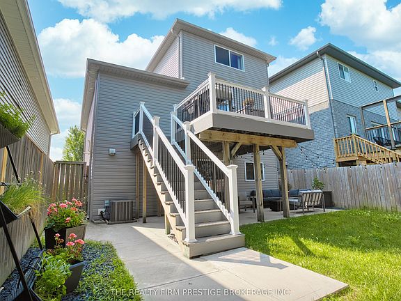MOVE IN READY!!! This Unique home has been fully painted and is ready for its next family. Discover this stunning custom-built, single-owner 2 Story home in the heart of Strathroy. Designed with modern upgrades and thoughtful details. This beautiful two-bedroom, two-bathroom home features hardwood flooring throughout, offering a seamless, carpet-free living experience. The open-concept kitchen flows into the living room, creating a bright and inviting space perfect for entertaining. The spacious primary bedroom includes a walk-in closet, while the second bedroom offers double closet doors for ample space. Step outside to enjoy the updated composite deck, ideal for relaxing or hosting guests. The unfinished walkout basement leads to a cement patio, providing endless possibilities for additional living space. Convenience meets efficiency with a smart washer and dryer, a 100-amp electrical service, and a rented hot water heater. Updates - vinyl railing on front porch (2024), Smart switches upgrade - work on phone (2020). Situated in the charming town of Strathroy, this home offers the perfect blend of tranquility and accessibility, close to schools, parks, and all essential amenities. Don't miss your chance to own this beautifully upgraded home. Schedule your private showing today!