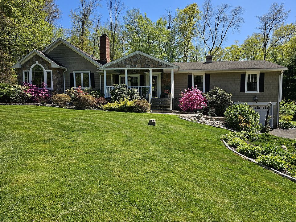 You will be amazed by this private and beautifully landscaped property. On almost an acre this extended ranch boasts almost 2400 sq. ft. on the main level, with an additional 400 sq. ft. recreation game room in the lower level. The main level offers 3 bedrooms and 2-1 2 updated bathrooms, a formal living room with wood burning fireplace, an oversized dining room, great room with gas fireplace and vaulted ceiling, and a kitchen with plenty of storage space, a pantry and 2 extra refrigerators, tile flooring, 6-burner gas stove and a serving window open to the dining room. A 4-season sunroom leads to a patio with a gazebo, firepit, outdoor seating and gas grill. An elegant home office with vaulted ceiling, oversized window and electric fireplace complete the main level. You will find many skylights and ceiling fans throughout the home. The finished lower level features a gas fireplace, bar, pool table and seating area for relaxation. Located on a quiet, lightly traveled road, this property is surrounded by trees and creates an atmosphere of comfortable living for the enjoyment of family and friends. Easy access to Route 8, Oxford airport, Tweed New Haven airport.