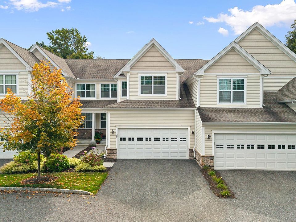 Beautiful Luxury Portman Condo in the Sought-After Ridgewood Community! This stunning 3-bed, 2.5-bath home by Toll Brothers is perfectly situated on a private cul-de-sac in one of Ridgewood's most desirable and unique locations. Offering over 2,680 SqFt of beautifully designed living space, this residence includes a rare 4-ft bump-out for added size plus a finished walk-out basement. The main level features an open floor plan with gleaming hardwood floors, custom cabinetry, stainless steel appliances, and marble countertops-perfect for modern entertaining. An upgraded skylight fills the kitchen with natural light, while sliding doors lead to a private deck with tranquil wooded views. The spacious living room highlights a gas fireplace with a stone veneer surround and rich wood mantle. Upstairs, entire 2nd level has upgraded designer hardwood flrs. Primary suite impresses with a walk-in closet and a spa-like bath w/ a double vanity, soaking tub, and separate shower. Two additional bedrooms include generous closets & soaring ceilings. The remodeled finished walk out basement is great for a media/ entertainment room. Enjoy the rare privacy of a wooded backdrop and direct access to the expansive "Great Meadow Lawn" next door-ideal for gatherings, games, or a peaceful stroll. Resort-style amenities include an outdoor pool, gym, tennis and basketball courts, movie theater, and clubhouse-all within walking distance. You can't build this home for the price, an absolute must-see!