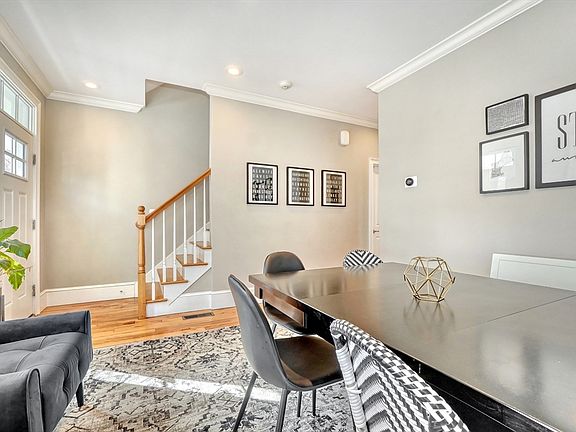 Location, location, location! This luxury downtown townhome offers unbeatable convenience just steps to Main Street, new library, post office, grocery store, commuter rail, and bus line. Featuring 10 rooms, 3 bedrooms, and 3.5 baths, this home combines space and style with soaring ceilings and an open-concept layout. The white kitchen with granite counters and stainless appliances flows into a spacious living room with access to a private patio and two parking spots. A flexible front room functions as a dining area, office, or playroom. The second floor includes two bedrooms with en-suite baths, including a primary suite with walk-in closet and laundry room. The third floor offers a large bedroom with full bath and walk-in closet—perfect for guests or extended family. Finished lower level includes a family room and two additional storage rooms. A rare find in an ideal downtown location!
