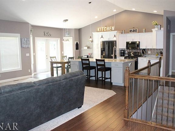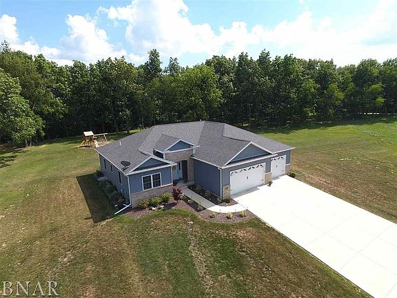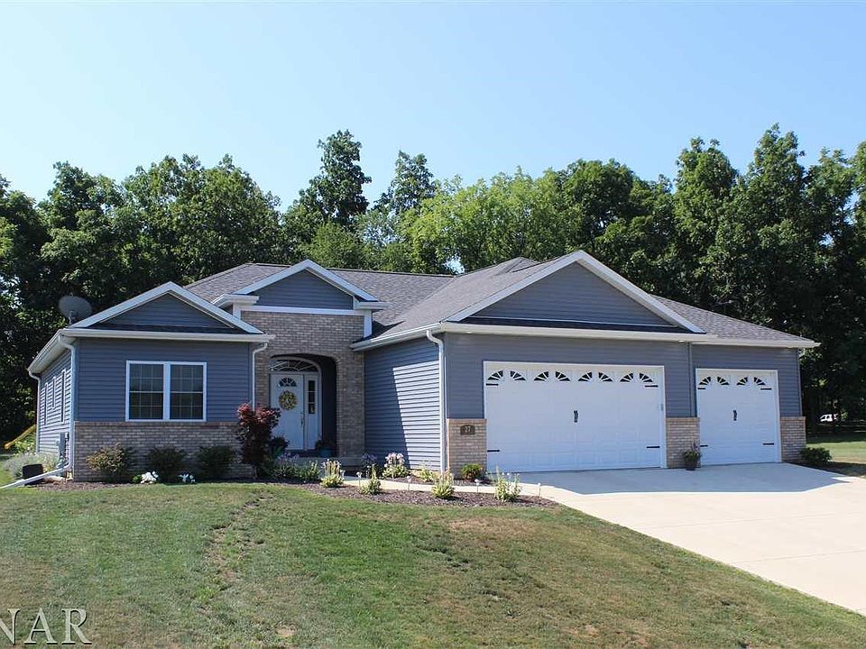 Like new, super clean & tastefully finished! Private, with great views of woods & wildlife. Next door to El Paso Golf Course & just a short drive to Bloomington-Normal. Spacious & welcoming foyer opens to great room w/gas fireplace, vaulted ceiling, kitchen w/quartz counters, custom staircase handrail & beautiful wood floors. Both main floor baths offer double vanities, & the master has a tile shower w/glass doors. A finished basement provides loads of room for theatre, kids, & guests. The garage is heated & seller will sell riding mower.