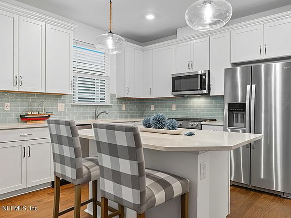 Screened lanaiGorgeous coastal backsplashGas rangeOpen floor planCustom blindsStainless steel appliances