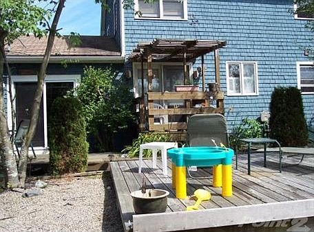 Half of a DUPLEX 1600 sq.ft. (includes playroom in lower level), Walk-up attic (extra storage)...BETTER than a Condo..NO FEES...private back yard with 2 patio decks, large eat-in kitchen(18X13), living room(19X11), 1st floor family room(22X12)with pellet stove, Central AC, FREE Buyer Home Warranty for one year, ***end of Cul de sac- private*** WALK IN THE DOOR CONDITION...Motivated sellers.. ..This IS a 3BR,1 1/2 bath, heat & Central AC HOME ..NOT a cramped,no storage,no private yard CONDO