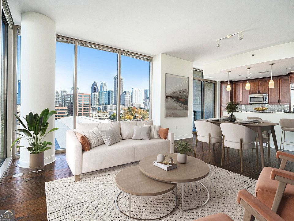 Stunning Corner Condo with Unmatched City Views at The Atlantic! Experience Sophisticated Intown Living at The Atlantic, one of Atlanta's most iconic high-rise residences. This Corner Condo sits on the 7th floor and showcases Stunning City Views from every room thanks to Floor-to-Ceiling Windows that frame the Midtown skyline like artwork. Natural light pours across the Hardwood Floors, highlighting the open and airy layout designed for effortless everyday living and stylish entertaining. Step into a Spacious Living and Dining Area where modern finishes pair perfectly with panoramic views. The Chef's Kitchen features Stainless Steel Appliances, Granite Countertops, Rich Cabinetry, a Gas Range, and a Large Breakfast Bar for gathering with friends or enjoying quiet mornings with the skyline as your backdrop. Retreat to the Primary Suite, complete with a wall of windows, a Walk-In Closet, and a Private Spa-Like Bathroom offering a deep soaking tub, separate shower, and dual vanity. The Secondary Bedroom is equally impressive, perfect for Guests, Roommates, or a Home Office setup with a view. A stylish Half Bath off the main living space adds convenience for visitors. Outside your door, next-level amenities await. Enjoy a Resort-Style Pool with Unmatched Skyline Views, a State-of-the-Art Fitness Center, Clubroom, Outdoor Grilling Stations, and thoughtfully curated Social Events Book Clubs, Game Nights, Bourbon Tastings, and more. With 24-Hour Concierge and 24-Hour Security, luxury and peace of mind come standard. All of this sits in the heart of Atlantic Station, with Publix, Target, Restaurants, Coffee Shops, Shopping, and a Movie Theater just steps away. Walk to Local Favorites like Pasta da Pulcinella, Wagaya, and Sugar Shane's, or hop on the Free Community Shuttle to explore Midtown's museums, the symphony, and arts district. You're also just minutes to Piedmont Park, Westside Provisions, and major highways (I-75/85/400) making city living incredibly convenient. This is the intown lifestyle you've been waiting for.
