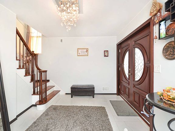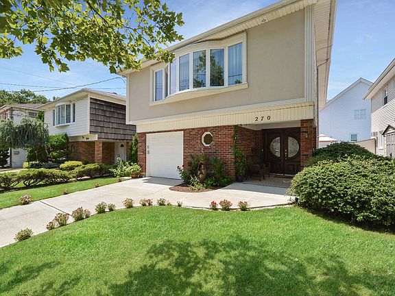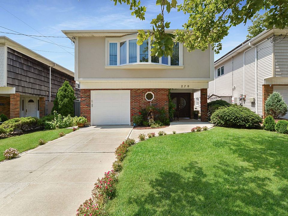 This is an exclusive listing of AmeriHomes Realty 718.447.2626. Enjoy the finest standard of living in this high-ranch contemporary jewel boasting exquisite interiors and extensive outdoor space. The coveted open layout and flow of the home begin with the spacious entry foyer with a window, walk-in coat closet, open tread stair leading to the spacious living area with a curved, oversized window that floods the room with natural light. The large open plan living room is the epitome of warmth and hospitality with gorgeous parquet floors and high ceilings and a decorative fireplace. A decorative fireplace is perfect for gathering and relaxation. The dining area is big enough to fit a table that seats eight guests and flows into the designer chef's kitchen with two walls of upper and lower two-tone cabinetry, dark sleek Quartz countertops, and high-grade stainless steel appliances. Down the hall are three great sized bedrooms, all with custom closets. Unwind in the enormous, deluxe spa-inspired bathroom with custom-built backlighting, a deep-soaking tub, and a spacious glass-enclosed shower. On the lower level, you will find sprawling open space ideal for a second family room or playroom. There is another large bedroom, another full bath with shower, the laundry room, and a convenient interior entrance to the garage. If it's the enjoyment of the outdoors you crave, sliding glass doors lead you to the backyard oasis with a gazebo and newly paved area for grilling and dining. A pergola surrounded by lush established peripheral plantings including roses, evergreens, and more. There is a one-car garage, with a new automatic door, and a long driveway that can easily accommodate two or more cars. Recent renovations include new windows, air conditioning system, Italian porcelain tiles, new hardwood floors, LED spotlights, and new Stucco front. Please call AmeriHomes Realty at 718.447.2626 to schedule a showing.