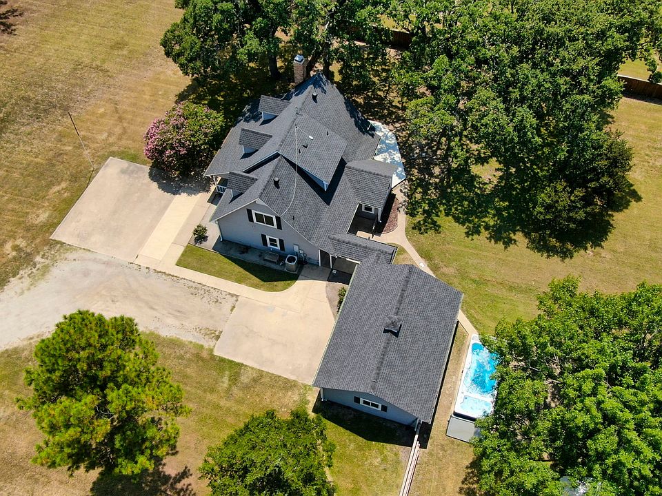 Nestled beneath massive oak trees, this fabulous home exudes stunning charm with its thoughtful updates high-end finishes. Home boasts wood beams, shiplap walls, travertine tiles, & concrete countertops, creating an inviting and rustic elegance throughout. Spacious family area is perfect for entertaining, designed with an open-concept layout that promotes a warm & welcoming atmosphere. Updates include a newer roof & windows. Detached 400 square foot garage, has heating & cooling offering versatility for various uses including future conversion. Property features an incredible 1800 square foot workshop, equipped with a 5-ton HVAC unit, making it perfect for any project, workspace or hobby. MB is located downstairs, features a custom vanity & an impressively large walk-in shower. The Atlas Swim Spa, perfect for relaxation & fitness alike plus a extra storage building. Home seamlessly blends rustic charm with modern amenities, making it a truly unique and desirable property.