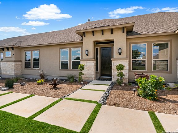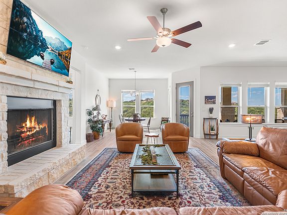 Thoughtfully designed for multigenerational living, this dual-home estate in gated Diamond Ridge blends privacy and connection under one roof. The main residence offers three bedrooms- the primary suite with ADA-compatible doors, dual vanities, and a modern soaking tub, and two additional guest bedrooms each with their own en-suites. A private study with French doors (and a closet - potential for another bedroom), formal dining, and a grand living room anchored by a wood-burning stone fireplace. The gourmet kitchen features a granite island and GE Cafe smart appliances. A media room prewired for surround sound and a projector completes the main house, which also includes a two-car garage with a Tesla charger. Attached yet fully independent of the main residence, the secondary residence is a true second home: two bedrooms, full kitchen, living area, laundry, its own garage with 240V outlet, and private driveway and entrance - there is no internal access from the main house, ensuring complete separation for in-laws, long-term guests, or caretakers. Both residences enjoy reverse-osmosis water systems, security systems, private back decks with Hill Country views, and separate driveways and garages. Nestled on 3.15 acres with access to a community pond for recreation and fishing, tennis courts, and a pavilion with outdoor fireplace and grills, this estate is just 10 minutes from downtown Boerne's Main Street, featuring dining, shopping, and Boerne's highly acclaimed schools. Just 25 miles from San Antonio Airport and 7 miles to Interstate 10, this location is prime for convenience. Don't miss out on this unique property with two dwellings under one roof! They don't come along often! If you're looking for a home with a view, multigenerational living, an in-law suite, on acreage in Boerne, Texas - this is it!