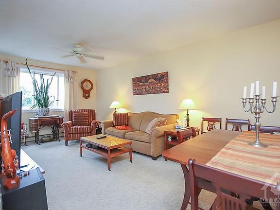 Bright two bedroom unit in Viscount Alexander Park! Open concept living and dining room area. Large kitchen area with quartz counter tops and lots of cabinet space. The large principal bedroom features a walk-in closet. The second bedroom is bright and is a good size. This unit also features an in-suite laundry. The three piece bathroom has upgraded quartz counter tops. The private balcony provides you with great views! Walking distance to shopping, schools, trails, and entertainment. A short drive to downtown Ottawa! Building includes wonderful amenities such as: pools, scenic duck pond, exercise centre, tennis courts, and a squash court. In unit storage. No dogs allowed in the building. Parking is not owned but is available at a cost of $50 per month.