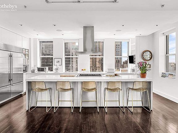 Located just steps from City Hall Park, this spectacular five-bedroom loft in Tribeca’s prestigious Tower 270 offers approximately 5,000 square feet of impeccably renovated living space. Boasting soaring ceilings, panoramic views of Lower Manhattan, the Hudson River, and New Jersey, this home, featured in Architectural Digest, displays a refined modern aesthetic reflecting a true downtown sophisticated lifestyle.