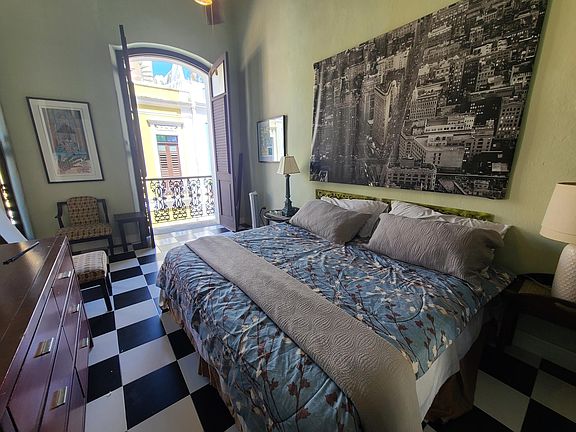 Three balconies on second floor, furnished apartment with living, dining, one bedroom, 1 bath, foyer, shared laundry, 2 inverters, equipped. Excellent location in Old San Juan. Water included in rent. Electricity is the responsability of Renter.