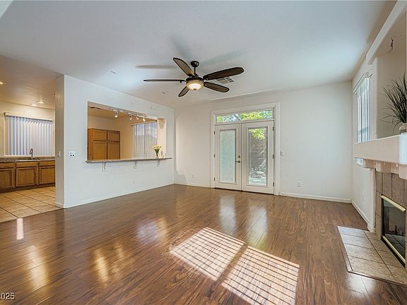 Welcome to this Gated Henderson community with a park and picnic area, minutes to The District at Green Valley Ranch, and easy access to the airport and Lake Mead Recreation Area. This inviting two-story home offers 3 oversized bedrooms, 2.5 baths, and a 3-car garage with extra storage. The kitchen features granite counters, stainless steel appliances, and generous cabinet space with an added breakfast bar. A gas fireplace anchors the main living area, complete with surround sound and French doors with transom blinds that lead out to a private backyard with a shaded patio, a hot tub, and a gazebo, offering a relaxing outdoor retreat. Back inside, the vaulted ceilings and large windows bring in lots af natural light. Upstairs, the primary suite also has vaulted ceilings. Recent updates include a high-efficiency HVAC system (2024). Conveniently located near shopping, dining, and outdoor recreation, this home combines comfort and location in a desirable gated setting.