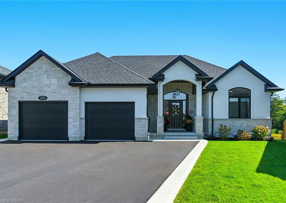 An absolute Stunner! 270 Charles St is a custom built bungalow in scenic Waterford, where modern elegance meets small-town soul. Boasting 4 Bedrooms, 3 baths and 2 Kitchens, this tailor-made residence was built in 2023 and is nestled in the brand-new Cedar Park community. Enjoy over 3,200 sq ft of luxe living from top to bottom, with the distinct advantage of a full In Law Suite. Step inside and immediately be captivated by the gourmet quartz kitchen with centre island opening up to a great room with exquisitely tiled gas fireplace. Remote controlled blinds cover gorgeous windows overlooking your rear covered patio and private backyard. Main floor primary Bedroom with elegant ensuite paired with convenient main floor laundry creates the ultimate in everyday ease. The lower level is just as exceptional! Another gorgeous kitchen, two bedrooms, family room and full bathroom along with a completely separate entrance leading out through the massive double garage. Minutes from Waterford Ponds, Heritage Trails, and downtown shops. This residence unites everything you've been longing for, refined in every exquisite detail. Don't wait to start living your best life in this beautiful community!