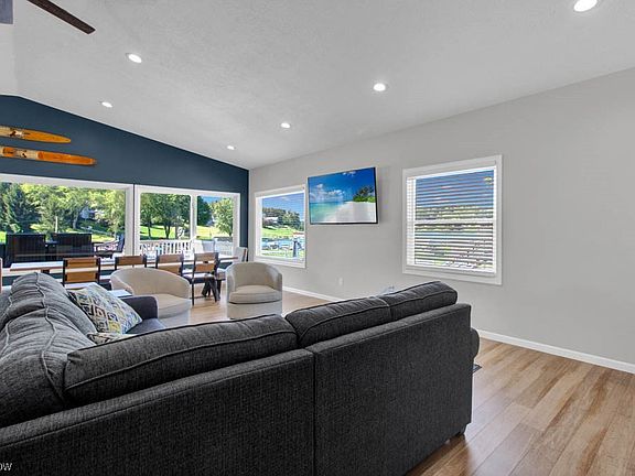 Prepare to be captivated by this fully remodeled haven, where waterside living meets modern luxury. With its breathtaking lake views, thoughtful design, and abundance of amenities, this home is more than a residence—it's a lifestyle. Enjoy those spectacular lake views on an exclusive covered deck. The home is considered waterside, meaning owner does not own to the water and a dock does not convey. Step inside to discover a sanctuary of elegance and comfort, highlighted by a stunning cathedral ceiling that amplifies the sense of space and airiness. Oversized windows throughout the main living areas frame the panoramic lake views. The heart of this home is a sprawling kitchen adorned with sleek granite countertops. The open floor plan effortlessly flows into the inviting living area, making entertaining a delight. The main floor is crowned by a luxurious ensuite, providing a private haven of relaxation with modern amenities. Descend to the lower level, where comfort knows no bounds.