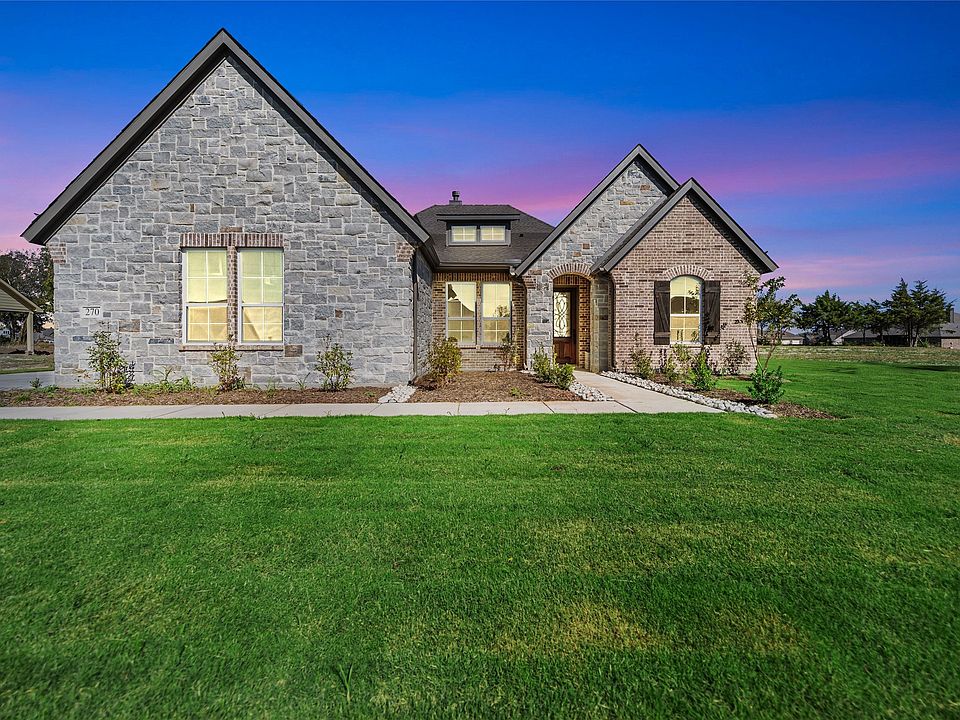 Estimated October 2025 completion! Ask us about our Trade In Trade Up program, we can buy your home! Step into the Bluebonnet by Riverside Homebuilders and embrace a lifestyle of comfort and functionality. With 4 bedrooms and 3 bathrooms sprawled over 2,686 square feet, this single-story haven offers ample space for every member of the family. As you enter through the inviting porch, the airy foyer sets the tone for the home's open layout. To the left, a flex room awaits, beckoning to be transformed into your ideal space—whether you envision a home office, gym or hobby room. Continue through the foyer to discover the heart of the home—a luminous dining room bathed in natural light. Beyond lies the main living area, a seamless fusion of the expansive kitchen, cozy family room featuring a fireplace and a charming nook adorned with picturesque windows. On the right wing of the home, privacy awaits with three traditional bedrooms and a breathtaking owner's suite. The owner's retreat boasts a spacious walk-in closet and a spa-like bathroom, offering a sanctuary for relaxation. Convenience is paramount with the laundry situated just off the bedrooms, accompanied by a mud bench near the garage entrance. To embrace the beautiful DFW weather without having to leave your home, step outside to the generous covered patio—where endless possibilities for outdoor enjoyment await. With its thoughtful design and inviting atmosphere, the Bluebonnet embodies the epitome of charming Texas living for all families alike.