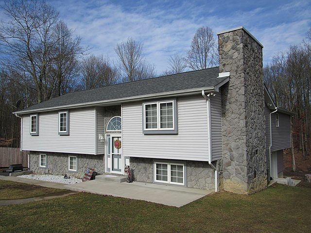 Beautiful home that shows like new! Gorgeous master suite with private bath and deck...Hickory flooring..Updated kitchen with porcelain tile and appliances. 2 year old Architectural roof, new Pex Pipe plumbing, 2 Hot water tanks, new electrical panel, beautiful stone fireplace, office and extra garage/storage. This house is move-in ready. You will love the space & finish work! 2 master suites!
