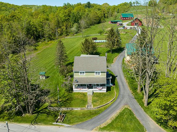 This 33-acre working Thoroughbred farm is nestled on a quiet country lane 35 minutes to downtown Saratoga Springs. The 1850s 3-bed, 2-bath farmhouse features wood floors, granite countertops, ceramic backsplash, crown molding, 2-car garage and inground pool. There are 3 horse barns, 17 stalls, 8 pastures/paddocks and hayfields. Barn 1 has 9 box stalls 10'x12', a wash stall, shavings storage and tack room. Barn 2 is a shed-row style and has 3 large stalls. Barn 3 is insulated and has 5 20'x20' foaling stalls, an office, camera system. The larger barns have loft storage for approx. 600 hay bales each. The equipment/party barn with finished 2nd story loft is a great space for storage/ workshop. The Farm has also been a beautiful backdrop for a wedding and bridal shower.