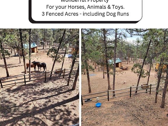 *** Taking Back up-offers - Call listing agent for info | Up to $6500 Buyer Credit at Closing, w/Preferred Lender | CHARMING MOUNTAIN HOME w/OUTBUILDINGS & Land - Located in Woodside Park | (3) Usable FULLY FENCED ACRES | Beautiful HORSE PROPERTY | Quiet Side Street ~ Nestled in the desired Woodside Park | 1.5 Miles off 285 | Minutes from Conifer | 30 Min to SW Denver Metro ads | Front Gate Entrance, Private, Long Driveway to Home, Garage & Outbuildings | 2 Stall Barn for your Horses/Pets -or Enclose for your Workshop | Stable/Loafing Shed | Hay Storage Canopies | Woodside Park has hiking trails, an Equestrian Center w/stables and an arena for residents. Enjoy riding from your property onto miles of the neighborhood trails ~in this equestrian community. This is one of the most desirable horse-friendly properties in the foothills. This Home Features an Open Floor Plan: Inviting Kitchen ~Ready for your Holiday Cooking. Dining Room w/French Doors to Deck -Great for Entertaining: Grill Out & Soak in the Hot Tub under the Stars. Family Room- Gather near the Rock Moss Fireplace. Living Room- Read & Relax. Primary Bedroom w/ full bathroom & private balcony ~overlooking the property. Lower Walk out Level Features: 2 bedrooms, Full Bathroom, Wood Stove, Laundry, Utility/storage. Attached 515+s/f Garage w/storage | Abundance of Parking | 12K+ Home Generator Included | Paved Roads to Entrance of Property | County Maintained Roads | Located in the banana belt=less snow accumulation | Minutes from Elk Creek Fire Station, grocery stores, schools, coffee shops, eateries & Staunton State Park for recreational fun | LEGAL HORSE PROPERTY w/legal watering | Well household inside use w/water augmentation usage for horses, livestock and irrigation is available through the voluntary association | Drinking post/automatic horse waterer included | Roof Replaced: Oct 2017 |+Priced accordingly to reflect the interior, which the new owner, can make updates/design to his/her liking |