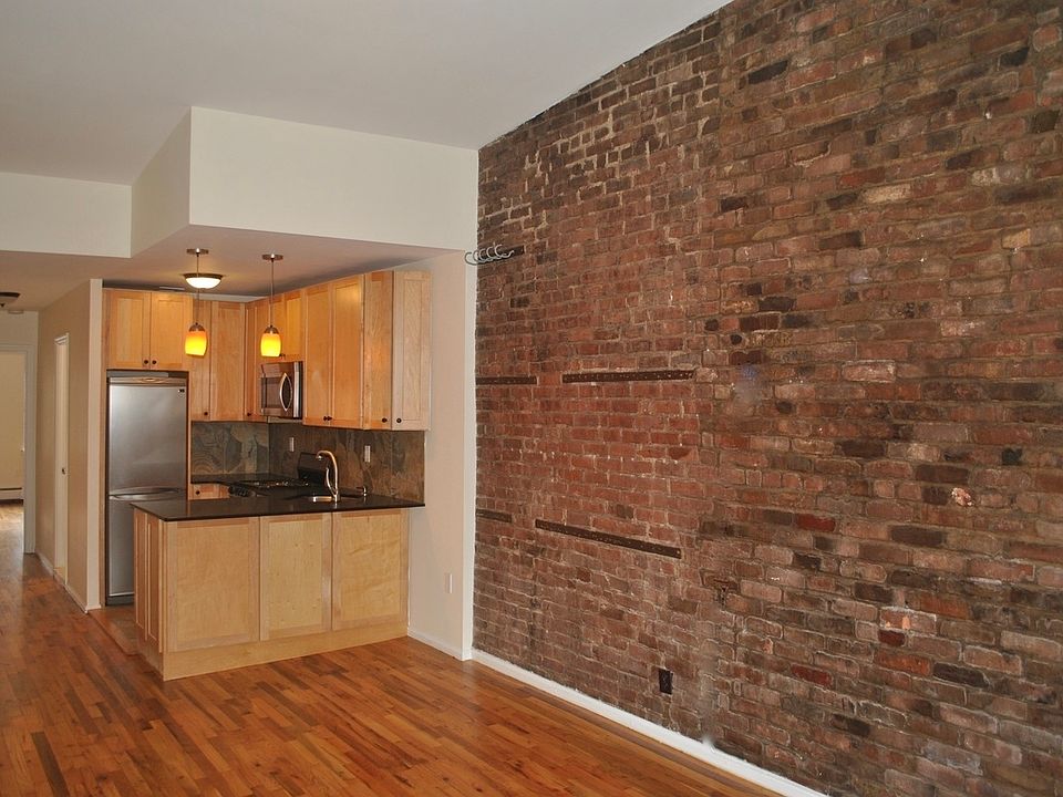 Large renovated One Bedroom in the Heart of the East Village! Beautiful top floor through apartment, incredible light, exposed brick, hardwood floors throughout, renovated bathroom and kitchen, quartz countertops, stainless steel appliances, dishwasher, laundry in building, shared courtyard, large bedroom & living area. Easy application & quick approval. Guarantors Welcome.