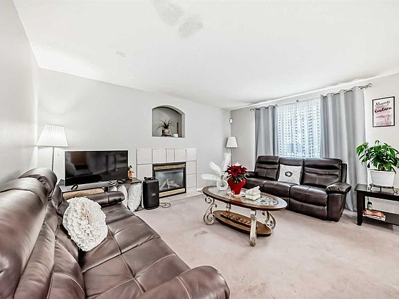 Offering over 2,700 sq. ft. of total developed living space, this well-maintained Coventry Hills home features 4 bedrooms, 3.5 bathrooms, and a fully finished basement, making it an ideal choice for families seeking space, comfort, and a fantastic location. The property is tucked away at the end of a quiet dead-end street and backs onto greenspace. The bright front living room is filled with natural light, creating a warm and welcoming space to enjoy your mornings. The spacious kitchen includes a walk-through pantry, an angled island with seating, and flows into the dining and living areas. A cozy electric fireplace in the living room is perfect for staying warm during winters, while large rear windows bring in plenty of natural light from the backyard. A half washroom and laundry area completes this level. Upstairs, the large bonus room features a versatile nook that works perfectly as a home office or homework station. large windows fills in the area with light. The primary bedroom has a 4 piece ensuite washroom and walk-in closet. Two secondary bedrooms have their own spacious closets and huge windows. A full bathroom completes the upper level. The fully developed basement expands your living space with a recreation room, a fourth bedroom, and a three-piece bathroom—ideal for guests, teens, or extended family. Outdoors, the generous back deck overlooks a landscaped yard filled with mature trees and shrubs, offering direct access to the greenspace behind. The home sits only steps from community picnic areas, walking paths, and three nearby schools. Coventry Hills Centre provides shopping, dining and everyday amenities just minutes away, with quick routes to the airport, Vivo Recreation Centre and Stoney Trail. A beautifully kept family home in a prime location—book your showing today!
