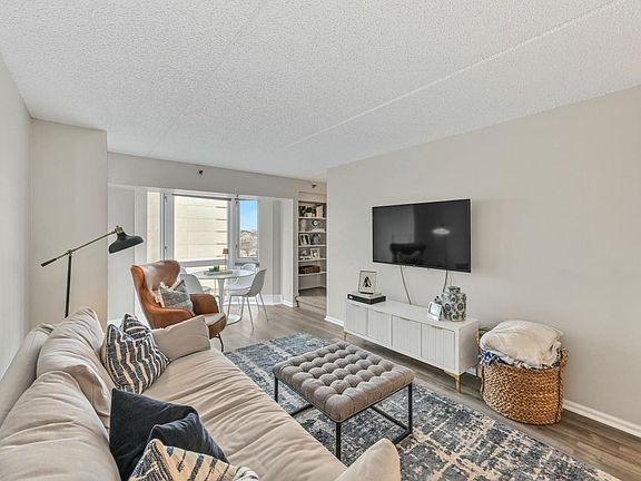Extra Bright 2 story condo w/in-unit laundry, parking space & new LVP floor in kit., hallway & great room! Wall of windows (all new except lower 3) brings in natural light! Updated kit: newer quartz countertops, double oven range & new faucet! Entire unit freshly painted warm & neutral colors! Large primary bedroom w/custom closet system. The in-unit laundry is located in the second bedroom closet. Current bathrooms & beautiful tiled shower too! Ideal downtown location! Walk to Fiserv, restaurants, plays & popular venues! Condo amenities: rooftop terrace & courtyard (grills & gardens too!) w/ panoramic views of city, 24-hour concierge, private 2-level gym, 25M lap pool/hot tub/sauna, private gathering rms, game rm & home theater! Location of unit -convenient to elevator. Storage Unit Too