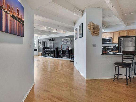 Beautiful 2BR/2BA condo in the coveted Blatz of Milwaukee! This ranch unit features a double door entry into an open foyer leading to the spacious living room w/HWF & plenty of natural light! The open kitchen offers granite counters, breakfast bar, and complete appliance package, The spacious primary bedroom offers a wall of closets, one walk-in and one standard, & ensuite with double sink vanity. The second bedroom is large w/an oversized closet and shares an updated hall bath This unit features TWO off street secured parking spaces, one underground and one in the attached structure! The Blatz is known for its premium amenities including 24 hr concierge, free laundry, pool, gym, theater room, indoor & rooftop gathering areas and more. Amazing location near Fiserv, MSOE and so much more!