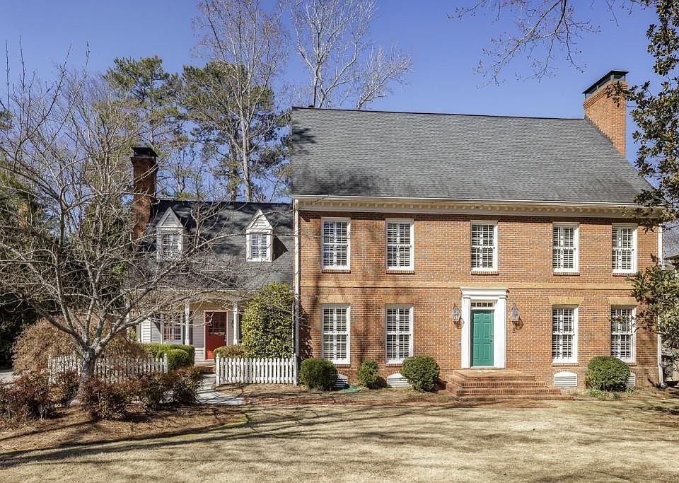 Nestled on a quiet cul-de-sac street in the highly sought-after Vineyards neighborhood, this elegant classic brick home exudes timeless charm and modern comfort. A welcoming front porch with a courtyard sets the stage for this beautifully designed residence. Inside, hardwood floors, plantation shutters, high ceilings, and spacious rooms create an inviting and luxurious atmosphere. The entry foyer opens to a sophisticated paneled study with built-in cabinetry, bookcases, and a fireplace, perfect for a home office or library. The formal dining room provides an elegant space for gatherings, while the expansive living room features a cozy fireplace and access to a screened porch. The bright and airy kitchen boasts white cabinetry, stone countertops, a center island with breakfast bar, stainless steel appliances including a gas cooktop, and a walk-in pantry. Open to the keeping room with a fireplace, this space is ideal for gathering and entertaining. A sunroom with deck access offers serene views of the private wooded backyard and lake. A rear stairway adds convenience. On the second level, the oversized owner's suite is a true retreat, featuring a fireplace, tray ceiling, bath with a double vanity, shower, soaking tub, and walk in closet. Three additional bedrooms include one ensuite and two sharing a Jack-and-Jill bath. The third level offers two more bedrooms with a shared bath and attic storage. A full, unfinished daylight basement provides endless possibilities for customization. Ideally located in the sought-after Sandy Springs/Dunwoody area, this home is conveniently close to premier shopping, dining, top rated private and public schools, and recreational spots like the Chattahoochee River and Dunwoody Country Club and Golf Course. With easy access to major interstates, this home provides the perfect blend of elegance, comfort, and convenience. Welcome Home!