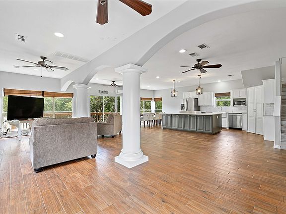The oversized garage is a true standout—fully functional for storing all your lake gear and designed with dual doors to transform into a breezy, covered gathering area for outdoor entertaining overlook the lake.