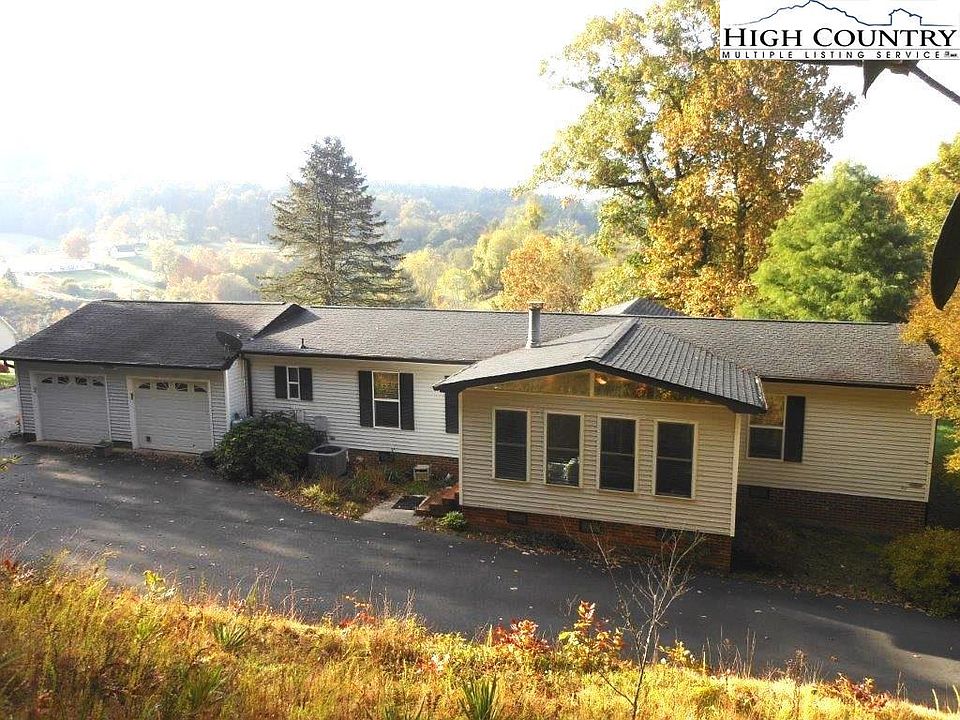Exceptional 3 bedroom, 2 bath home with Sunroom on almost 2 acres of land in a great private location close to Boone. Less than a mile from Hwy 421 but no road noise can be heard. Two bedrooms have large walk-in closets. Living room has a vented gas logs stacked stone fireplace for cozy winter nights. Dining Room is furnished along with two corner hutches for storing your special dishware. Furnishings shown in pictures to remain. Sunroom is a great place for reading and could be made into an office. Whole house music system is rare these days but is a nice feature to have. Oversized attached two car garage. Unique detached one car garage also includes a heated private study and half bath. This one won't last long with so many features and excellent proximity to Boone. Contents of propane tanks are not conveying.