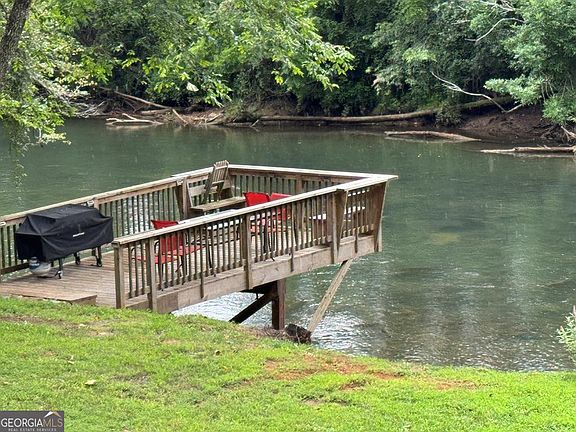 Nestled along approximately 420 feet of pristine Hiawassee River, this charming 2-bedroom, 2-bathroom riverfront retreat offers the perfect blend of modern luxury and natural serenity. Fully remolded from 2021 to 2024, this home is a haven for those seeking a peaceful escape or a lucrative vacation rental opportunity, conveniently located just minutes from the vibrant towns of Murphy and Hayesville. It has been thoughtfully updated with new plumbing, electrical wiring, a durable metal roof, central air conditioning, water heater, and new appliances for worry-free living. Its open floor plan features a striking large rock fireplace, perfect for cozy evenings, and a luxurious master bathroom with a tile walk-in shower. Relax on the expansive covered porch, complete with 3 lighted ceiling fans and recessed lighting, or savor your morning coffee on the new dock overhanging the tranquil Hiawassee River, where bald eagles soar overhead. A new oversized circular driveway provides ample parking, while the partial walk-in crawl space with a concrete floor, vapor barrier, lights, power and floor joist insulation offers convenient storage. Just minutes from Murphy and Hayesville, enjoy easy access to local amenities while being immersed in the soothing sounds of the flowing river and the beauty of Mother Nature.
