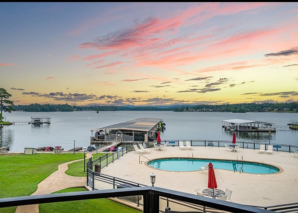 Very nice 1 bedroom condo with a nice lakeside pool, this condo comes fully furnished, turn key ready to rent or live in, it also has a king bed with a purple 4 mattress, An Ivan smith sofa, nice patio furniture with an egg chair over looking the pool and the lake, its a small price to pay for the million dollar views and an awesome location just off central Avenue close to everything hotsprings has to offer and just a short walk to the hotsprings mall. Fully furnish and equipped, Lush lawn area, boardwalk with setting areas to lake watch , a nice swimming pool, Laundry room, restrooms and sauna near the pool area for owners, it also has a small enclosed storage area. POA fee covers water, sewer, trash, lawncare and pool maintenance. Nightly rentals are allowed and the unit is fully equipped and furnished for immediate occupancy. No boat dock. This is an upper 3 floor unit with a beautiful view right above the pool area. The best place to be for a rental in my opinion ( just 2 short flights of stairs that are well worth the view ). No owner financing, cash buyer preferred ! Priced to sell !!