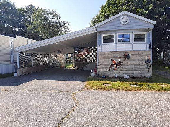 Welcome home to this gorgeous 2 bed 1 bath in popular Chelmsford Commons. With one of the largest lots in the park, you don’t want to miss this one! Stay dry from our NE weather with the huge enclosed carport that holds 2 cars or even 2 trucks very comfortably. Upon entering, you will feel the pride of ownership by admiring the stunning 3 year old kitchen! Soft close Maple cabinets galore, large pantry with pull out draws, 3 Lazy Susans, impressive granite countertops and backsplash! GE profile SS appl and convenient breakfast bar with bar stools. New beautiful vanity with marble top and New Pro custom walk in shower in bath. Waterproof LVF all throughout the home. Heated 3 season porch that leads out to the spacious , large yard for grilling and entertaining. If that wasn’t enough, there is also a brand new oil tank just installed last week by the park. HOA fee of $974 includes, taxes, water/sewer, snow removal and trash. Property being sold as is. Quick sale is possible.