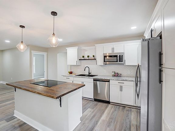 Completely remodeled home on corner lot! This house features 5 beds, 3 baths, and an open concept floor plan. The bonus room can be used as the 5th bedroom/2nd owners suite, or make it a family room. Brand new roof, HVAC, water softener, luxury vinyl plank flooring, granite counter, appliances, windows, and much more! Detached 2 car garage with attached workshop. Relax on the back porch, and enjoy a spacious yard. Must See!