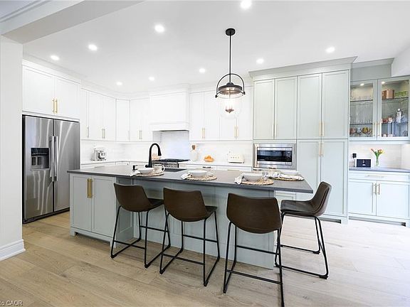 This home is EXQUISITE. A custom-designed masterpiece tucked away in an exclusive executive enclave, surrounded by the natural beauty of Grimsby’s escarpment. This residence was built in 2016 and completely renovated from top to bottom in 2022. Offering 4 spacious bedrooms, 2.5 luxurious bathrooms, and extraordinary escarpment views. Every detail has been thoughtfully curated with premium materials and timeless design, offering a level of quality that is unmatched. From the two-story grand entry way, the custom millwork and plaster crown mouldings to the white oak flooring, craftsmanship and sophistication shine throughout. The open-concept living and dining rooms are anchored by a striking double-sided glass fireplace clad in porcelain tile, an ideal setting for relaxing or entertaining. The chef’s kitchen is both functional and beautiful, boasting two-tone custom cabinetry, quartz countertops, an expansive island with breakfast bar, and top-of-the-line appliances, perfectly designed for everyday living or hosting guests. Upstairs, the bedrooms are filled with natural light, each offering ample space, generous closets and thoughtful finishes. The primary suite is a 5 star retreat, featuring a walk-in closet and a spa-inspired ensuite with a freestanding tub, floor-to-ceiling glass shower, double custom vanity, and luxe porcelain tile. Step outside to your private backyard oasis, complete with an exposed aggregate patio, gazebo, gas line for BBQ, and irrigation system, ideal for enjoying the outdoors in comfort and style. Additional features include a double garage with inside entry, a designer main floor laundry room and a rough-in for a 3 piece bathroom in the basement. Close proximity to parks, trails, schools, amenities, the QEW and Go Train for easy commuting. This home is one of a kind and must be seen to be fully appreciated. Don’t miss your chance to own this extraordinary property!