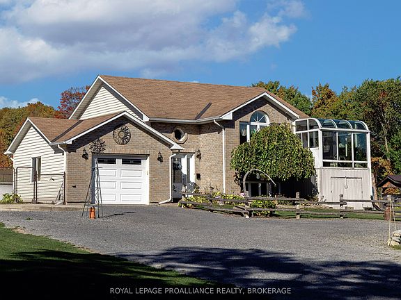 Beautifully updated and meticulously maintained raised bungalow, set on a private and manicured one-acre lot just five minutes North of the 401. Offering 2,000 square feet of finished living space, this wonderful family home features 2+2 bedrooms, 2 full bathrooms, formal dining room, a main floor family room, a bright solarium, and a lower-level rec/media room warmed by a cozy propane stove. Recent updates include refinished kitchen and bathroom cabinetry, new countertops, updated flooring, a new above-ground pool, and a custom screened-in sun-room designed for extended summer enjoyment. Positioned high above the road, the property offers sweeping views of rolling farmland and a peek of the Rideau Waterway. Immaculately maintained with every detail thoughtfully cared for, this home is truly move-in ready.