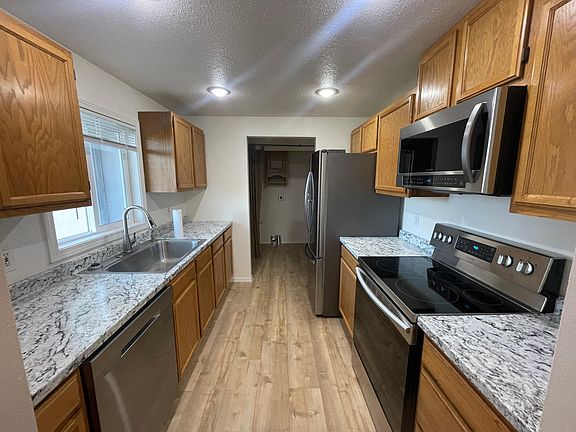 Newly remodeled 4 bedroom 2 bathroom home located on a quiet street close to shopping and schools. New floors and paint in the main living areas with a remodeled kitchen and bathrooms. Bathroom off the main bedroom. There is a large front yard and fenced backyard. Water/sewer/garbage included. Tenant responsible for electricity and gas.