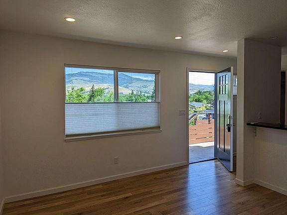 Lovely upstairs apartment with many great details. Contemporary and new one bedroom one bath with views across the valley. Spacious front deck for outdoor living space. Ductless heating/cooling system. Terrific location close to downtown and shopping. Washer included as well as a secure, covered designated parking space. Water and sewer included.