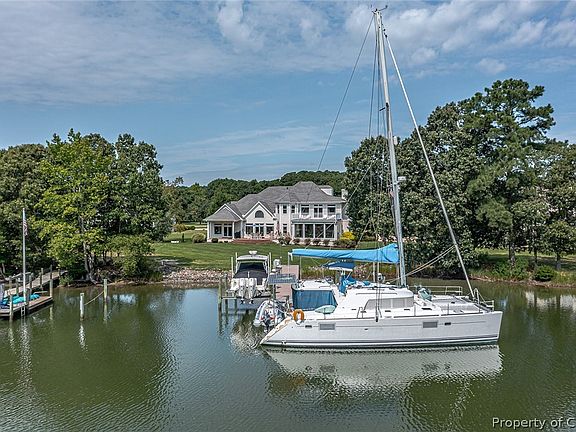 Located on Tabbs Creek w/4-5’ MLW and a PVC pier w/2 boat lifts and fish cleaning station, this large 6 bedroom, 5 1/2 bath “smart” home boasts an inviting floor plan designed to offer water views throughout. Intended for entertaining, it is the perfect river home for large gatherings w/family & friends. The 1st floor features a designer kitchen w/Wolf and Sub-Zero appliances which opens to a family room and a spectacular waterside dining area w/room for a crowd. The owner’s suite, also on the 1st floor, features a gas f/p, tray ceiling, walk in closet & bath w/soaking tub, his/hers vanities, & "smart" shower system. The main level includes a living room w/soaring ceilings, formal dining room, 2nd ensuite bedroom and laundry room w/garage access. The 2nd level offers a great room w/gas f/p & waterside balcony, 3 bedrooms, 2 hall baths and an office w/a great storage area, currently used as a bedroom. The 3rd floor features a sixth bedroom w/bath & walk in storage. This wifi integrated smart home features music & tv throughout, geothermal heat/air, a central vac and generator hookup. No detail was spared to make this the finest of waterfront properties! Furnishings available.