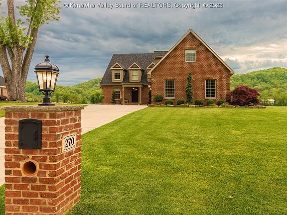 Beautiful River lot, not in flood zone ~ Amazing outdoor living with heated salt-water pool, gas fire pit, and basketball court ~ Watch the boaters on the Kanawha River ~ Your circular drive invites guests ~ Kitchen boasts side-by-side full fridge/freezer ~ 6 burner gas cooktop and "MOUSSER" cabinets ~ Hickory doors, trim and floors exclusively milled for this home reflects the quality throughout ~ Each bedroom has its own bath.