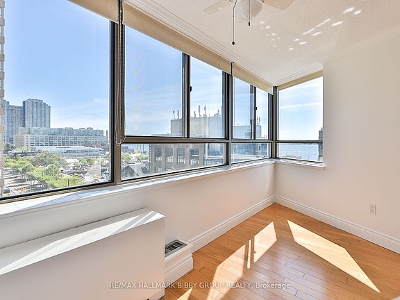 Welcome To This Iconic One-Bedroom Plus Den And Rare South Facing Unit. Enjoy Enless Sunshine And Waterfront Views From Every Window Of This Highly Sought After Residence In Harbourpoint III. The Unit features a comfortable 825 Square Feet, Hardwood Floors, And Endless Window Coverage Offering Breathtaking Lake & Island Views. The Residence Is Perfectly Situated In The Building As Each Room Exudes Panoramic Serenity. The Sun-Drenched Living & Dining Rooms Accommodate A Gracious Lifestyle As The Interior Seamlessly Integrates Into The Surrounding Harbourfront. Enjoy Enless Sailboats Driving By From The Kitchen And A Convenient Breakfast Bar. The Primary Bedroom Showcases Jaw-Dropping Lake Views And A Spacious Double Closet While the Washroom Offers a Spacious Design. This Home Is Perfect For Those Looking For Space and Comfort.