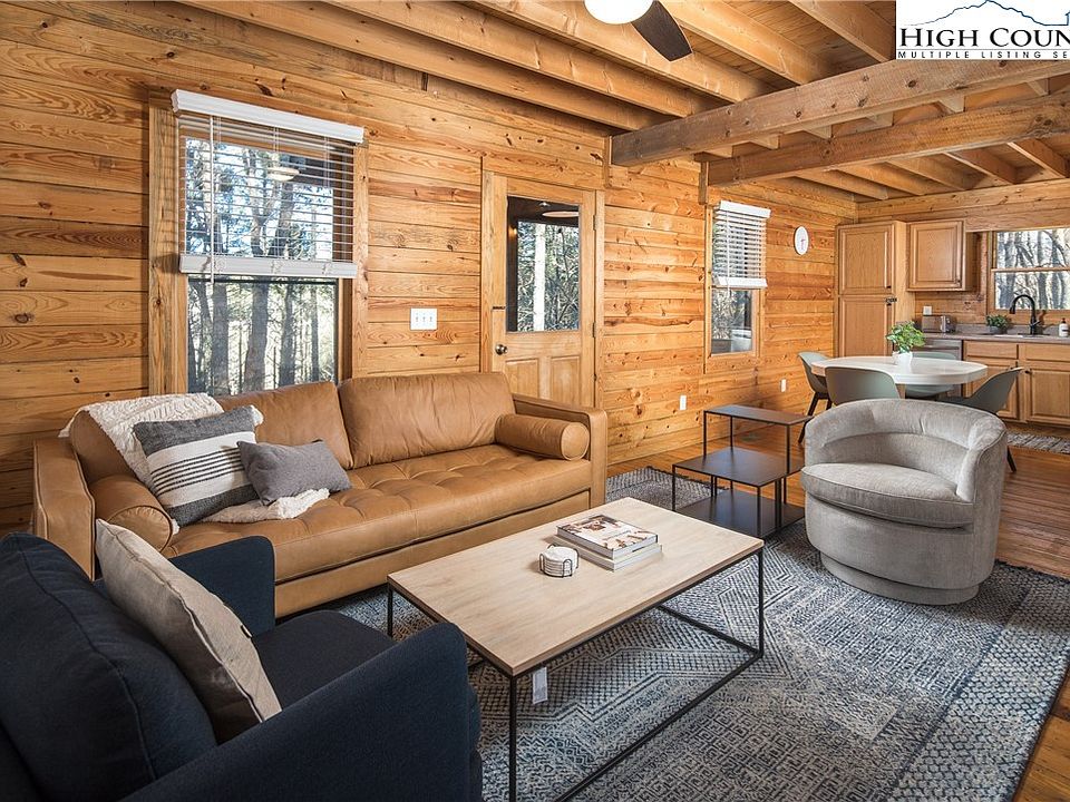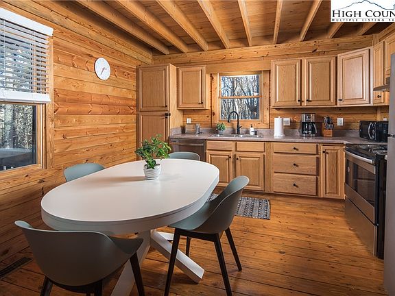 Welcome to this charming two-bedroom two-bathroom cabin, where tranquility and nature embrace you from every corner. Tucked away in the enchanting woods, this cozy retreat offers the perfect escape from the hustle and bustle of everyday life. As you step inside, you'll be greeted by a warm and inviting atmosphere. The open layout seamlessly connects the living area, the dining space, and the well-equipped kitchen, creating a delightful space for relaxation and making memories. The rustic feel and contemporary furnishings add just the right touch of comfort to make you feel at home. Wake up to the gentle sounds of birds chirping and sun rays peeking through the windows, reminding you of the picturesque forest just beyond your doorstep. Step outside and get ready to be captivated by the blissful ambiance that surrounds you. Enjoy the spacious deck and breathe in the fresh mountain air as you sip your morning coffee or evening cocktail. For those seeking adventure, hike through nearby trails, explore hidden gems, or simply soak in the beauty of nature. Minutes to the heart of Boone and all it has to offer including App State, local shops, restaurants and cafes, Booneshine, Brookshire Park & Trail, Rocky Knob Mountain Bike Park and The Greenway Trail to name a few. Ideal for a full time residence, weekend retreat, short or long term vacation rental. This woodland cabin is a true haven, offering a chance to escape the daily grind and reconnect with nature. Come experience the serenity and charm of this magical retreat today. Furnishings Negotiable.